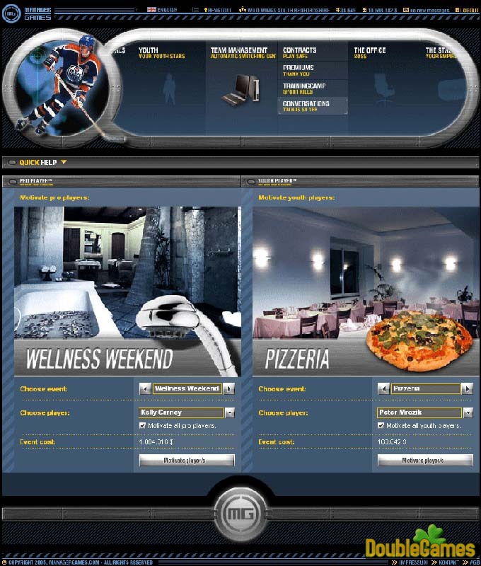 Big point siūlo tau dar vieną sudėtingą sportinį žaidimą, pavadinimu “Hockey Manager” - sporto simuliacijos žaidimą, kuris patiks tiems, kas mėgsta linksmai praleisti laiką. Tai yra internetinis žaidimas žmonėms, kurie mėgsta ledo rituį. Hockey Manager žaidimas siūlo tau sukurti savo nuosavą komandą. Tavo tikslas yra sukurti čempionų komandą! Čia tu susidursi su naujausiomis 3D technologijomis, nuostabia grafika, kuri tikrai patrauks tavo akį. Intuityvus “nusitaikyk ir spausk” tipo interfeisas padės tau.
